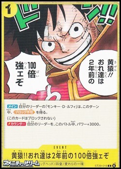 【C】黄猿?おれ達は2年前の100倍強ェぞ [ONE_ST29-016_C] 【C】黄猿?おれ達は2年前の100倍強ェぞ [ONE_ST29-016_C] 販売価格: 100円(税込) 当社単位: 4ad 在庫数 4枚 数量: 1 2 3 4 枚 返品特約に関する重要事項 お問い合わせ スタートデッキ EGGHEAD