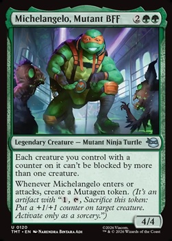 【英語Foil】ミュータントの親友、ミケランジェロ/Michelangelo, Mutant BFF [MTG_TMT_緑_0120_U]